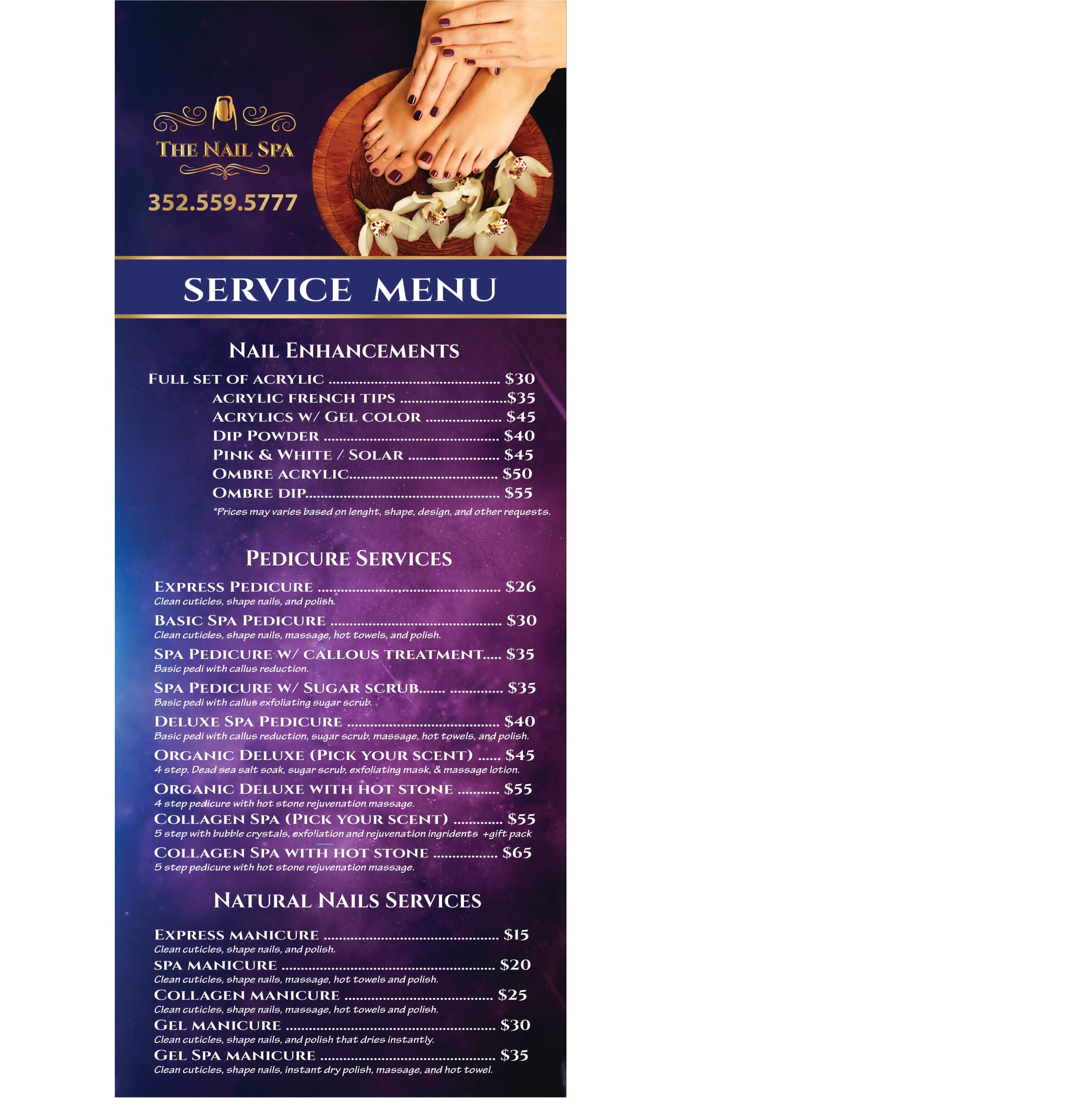 Nail Salon Menu Prices - Number 1 Nails Salon printing expert for Business card Menu Brochure Marketing products and more. Nail enhancements are a quick and cheap way to upgrade ones look.
